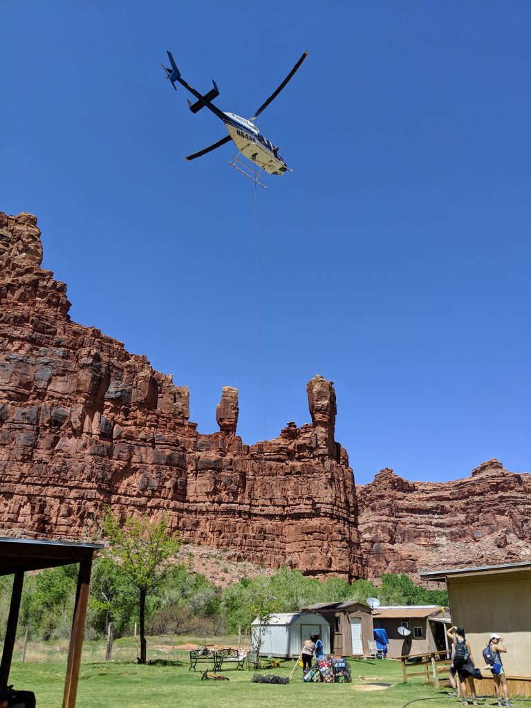 When we finally saw a sign to the campgrounds we were so excited! Little did we know, we still had another 2 miles to go… But we got to witness how this town gets resources — via helicopter drop-in! Oh yes and the horses, they get to freely roam in this village.