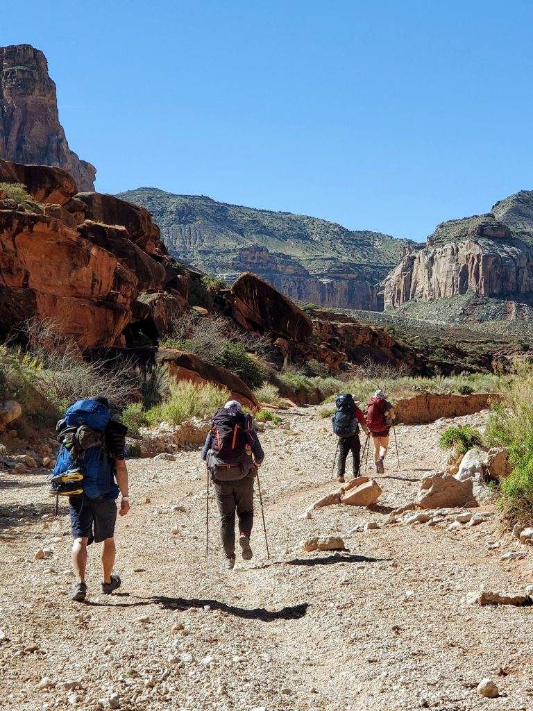 There was a total of six people on this trip – the other two arrived in the morning and had to park really far away. So while we waited for them, we did some last minute prepping and splitting of weight until around 8:00a to really get our hike started! We wanted to go as early as possible since we knew the hike is roughly 12 miles (on average, a 6-hour hike) to beat the afternoon heat.