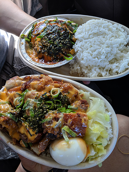 We jumped right in and started our adventure at a (much delayed) take off for Road to Hana! I mean, we even sat down for brunch to play Pokemon Go 😅
